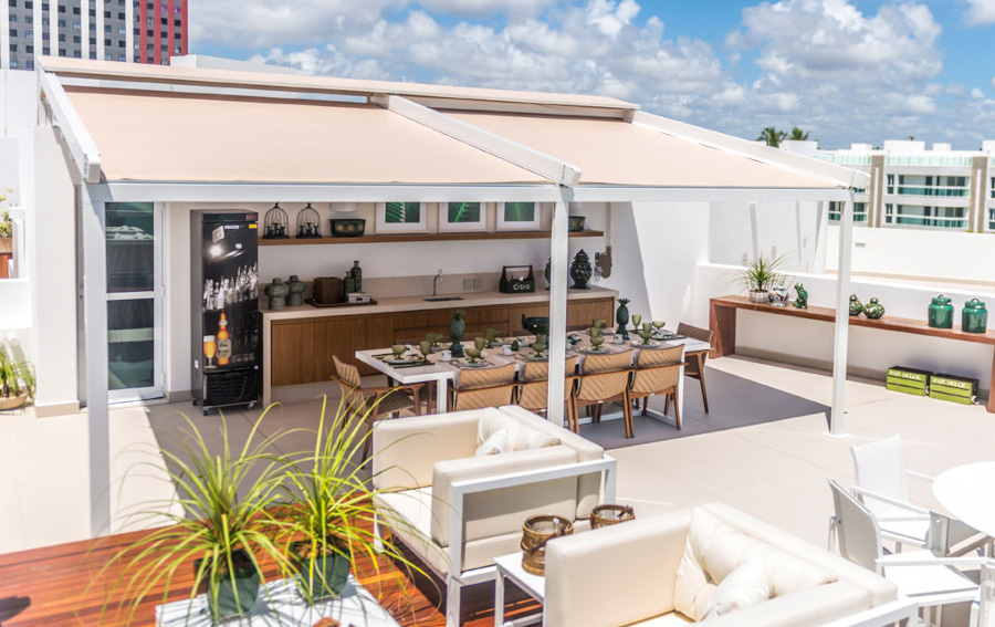 Esta cobertura rebatible ofrece una prestación mucho más funcional y estética en comparación a sombrillas, gazebos o incluso galerías.