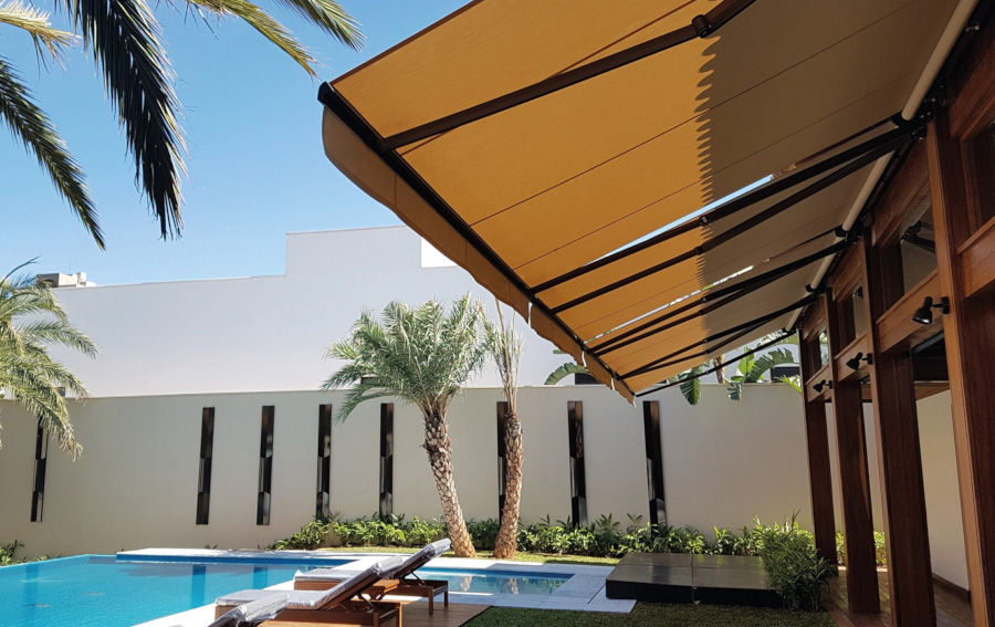 Su construcción, basada en el brazo tensor, garantiza una excelente protección solar y ofrece visibilidad del exterior. Su apertura se da en dos partes. Primero, sus brazos empiezan a describir un círculo.